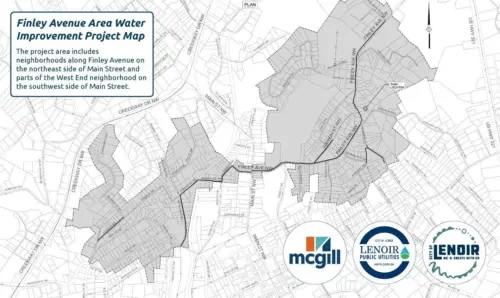 The Finley Avenue Area Water Improvement Project will improve water pressure in the Finley Avenue area of Lenoir.