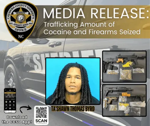 Catawba County, NC – On Wednesday, November 5, 2025, Narcotics Investigators with the Catawba County Sheriff’s Office conducted a vehicle stop involving a suspect in an ongoing cocaine trafficking investigation.