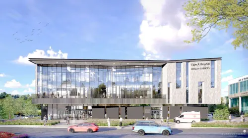 “We are especially honored to recognize an extraordinary, longtime friend of the college—one whose generosity and vision have played a pivotal role in bringing this health sciences facility to life. We extend our deepest gratitude to the Broyhill Family Foundation for their significant financial gift and for the enduring legacy of support the Broyhill family has shown this institution over many years. Their commitment to education, health care, and the well-being of our region has helped shape not just this building, but who we are as a college,” said Poarch. “I am absolutely thrilled to announce this morning that the new health sciences building will proudly bear the name Faye A. Broyhill. Please join me in thanking the Broyhill Family Foundation for their incredible investment in our college, our students, and our community.”