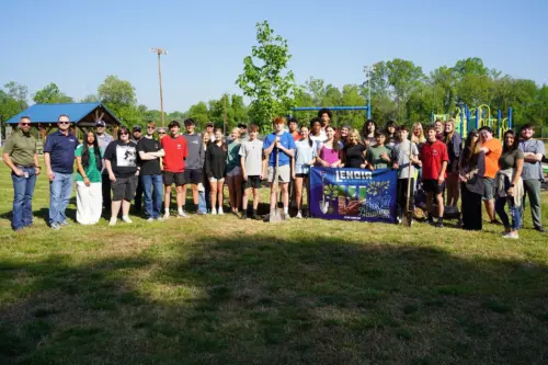 To celebrate Arbor Day in Lenoir, more than 20 students planted four trees at Optimist Park in Lenoir! The students are taking honors Earth and Environmental Science at Hibriten High School with Missy Hogan. The students and the City’s Parks & Public Properties division planted two Autumn Blaze Maple and two Purple Leaf Plum trees. Earlier this week, City Council proclaimed April 24, 2026, as Arbor Day in Lenoir. You can read the proclamation at https://bit.ly/4eG91Ly . Caldwell County Schools