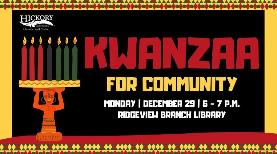 Celebrate Kwanzaa with Hickory Public Library at a special Kwanzaa for Community event on Monday, Dec. 29, from 6-7 p.m. at Ridgeview Branch Library. This family-friendly event is a great opportunity to learn more about Kwanzaa while